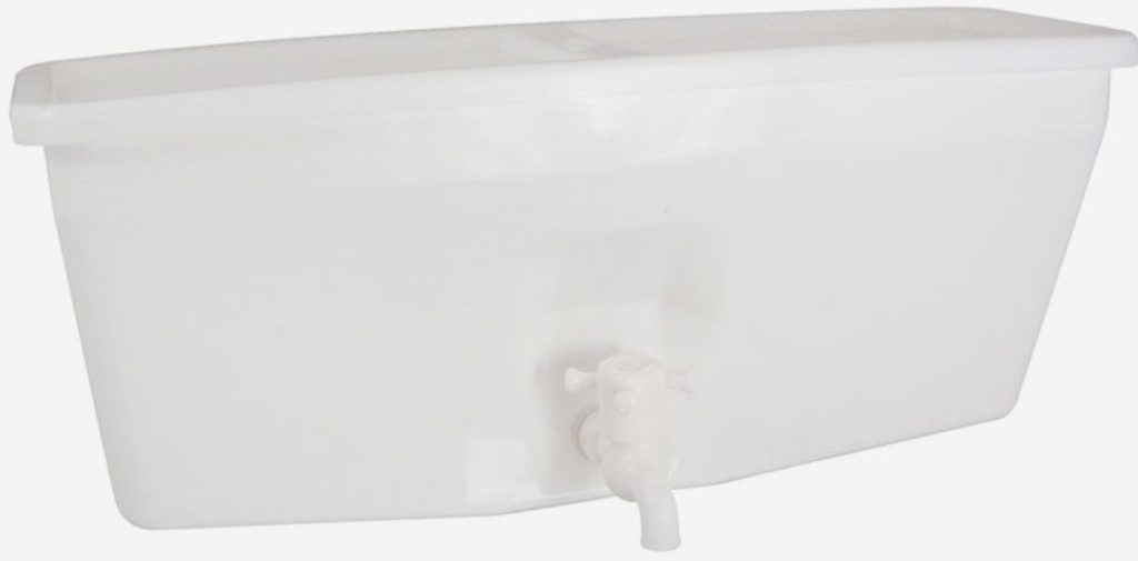 Modello popolare con un serbatoio capiente. È un design monopezzo con un lavandino, un contenitore e un comodino per un comodo posizionamento di un secchio. Se necessario, il dispositivo può essere spostato in qualsiasi altro luogo, grazie al supporto interno. Le porte non si apriranno da sole a causa dei magneti esistenti. Per la fabbricazione del dispositivo è stata utilizzata plastica ad alta resistenza, in grado di sopportare carichi meccanici minori.