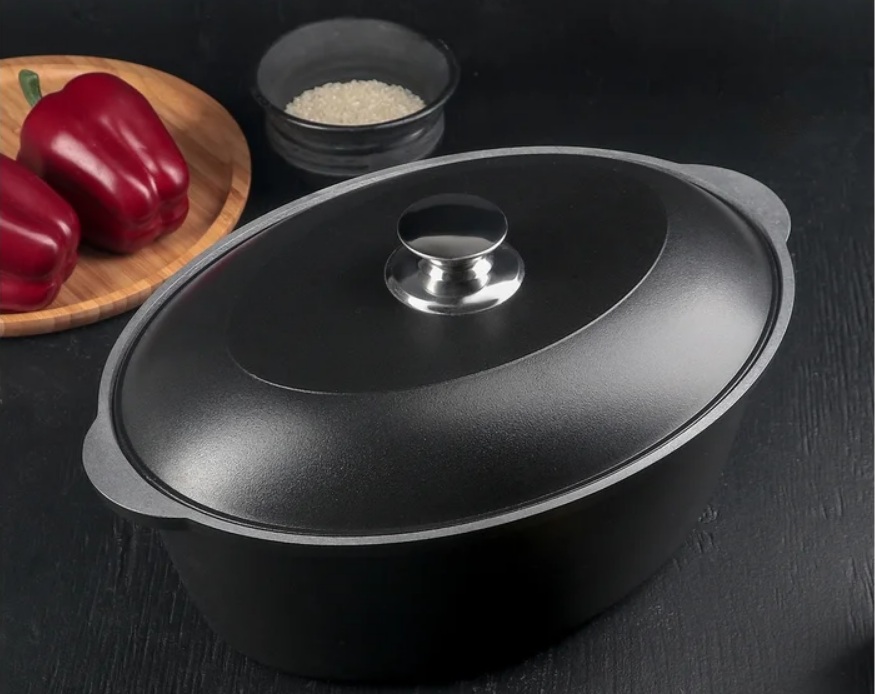 Lo stampo da stufato ha pareti spesse e un design allungato.