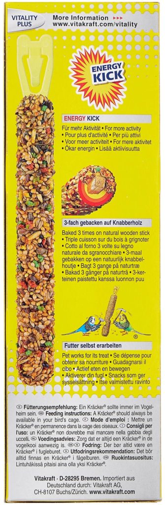 L'azienda è nota per i suoi alimenti per animali domestici e integratori. Il loro ultimo sviluppo è un cracker ricco di vitamine e sostanze nutritive che fornisce proteine a tutti i minerali vitali. Questa decisione ha un effetto fruttuoso sul comportamento dell'uccello, in particolare migliorandone il piumaggio. Dal momento che l'animale domestico deve procurarsi regolarmente una prelibatezza, quasi come nell'ambiente naturale. Questo è un ottimo modo per aggiungere nutrienti alla dieta del tuo animale domestico. Per creare una prelibatezza, sono state utilizzate tecnologie uniche di cottura a 3 fasi.