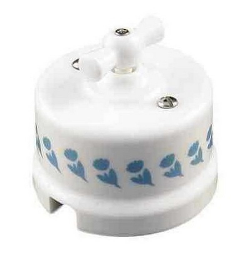 Modello di design progettato per l'interior design in stile retrò. Ha la capacità di utilizzare sia il cablaggio di tipo aperto che chiuso. Il corpo del prodotto è realizzato in resistente elettroceramica, che conferisce al dispositivo ulteriori proprietà di sicurezza elettrica. Si tratta di una soluzione prettamente di design, adatta per attrezzature da bagno. Il prezzo al dettaglio consigliato è di 1000 rubli.