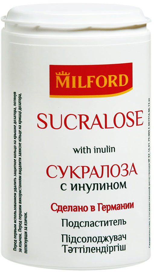 Chi ha deciso di passare all'alimentazione sportiva deve pensare a un dolcificante. In questo caso, il sucralosio è una delle migliori opzioni. In termini di gusto, supera di 600 volte lo zucchero ordinario. L'indicatore del valore energetico è 0 kcal, inoltre il prodotto è assolutamente sicuro. Si aggiunge a tè o caffè, cocktail vari. Usato spesso anche nella preparazione dei cereali. Il dosaggio può essere determinato da te, in base alle preferenze di gusto. La composizione contiene solo sucralosio, non contiene glutine e altri additivi. Come chi fa sport, è utilizzato da diabetici, vegetariani e vegani.