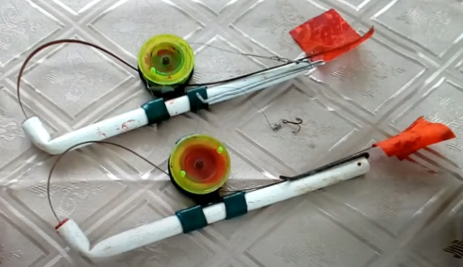 Un semplice dispositivo per il ghiaccio fatto in casa è costituito da un'asta sepolta nella neve vicino alla buca e da una lenza con una bandiera di segnalazione a forma di qualsiasi oggetto fisso leggero. Può essere un pezzo di tessuto luminoso o un ramo.