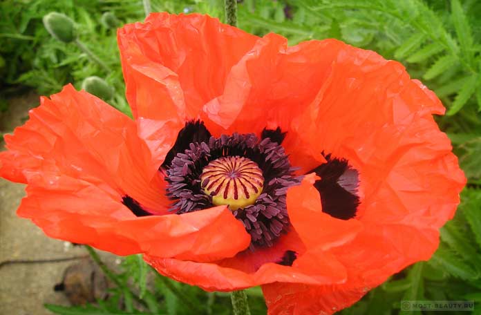 Una pianta grande e senza pretese con foglie abbassate sezionate in modo pinnato. La fioritura è breve, ma così bella che viene piantata in vari giardini e aiuole. Dopo la fioritura, rimangono scatole arrotondate con pori, che fungono anche da decorazione del giardino. In natura si trova spesso in gran numero nei prati e nei campi. Costo medio: 30 rubli.