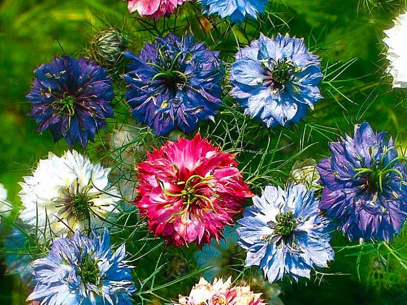 Fiori viola di varie sfumature dal blu al rosa e viola. Fiorisce solo per 1 mese, quindi, per una fioritura costante, è necessario seminare semi ogni 4 settimane. Può raggiungere un'altezza di 65 cm In India e in Egitto viene utilizzato per creare spezie e come condimento indipendente. Prezzo: 25 rubli per una confezione di semi.