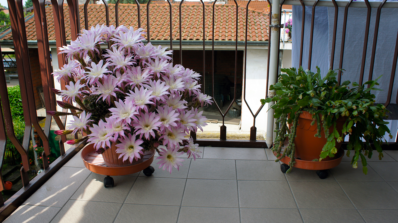 - Una fioriera ordinata con un trichocereus rigoglioso dovrebbe essere posizionata direttamente nel corridoio sul balcone o sulla veranda.