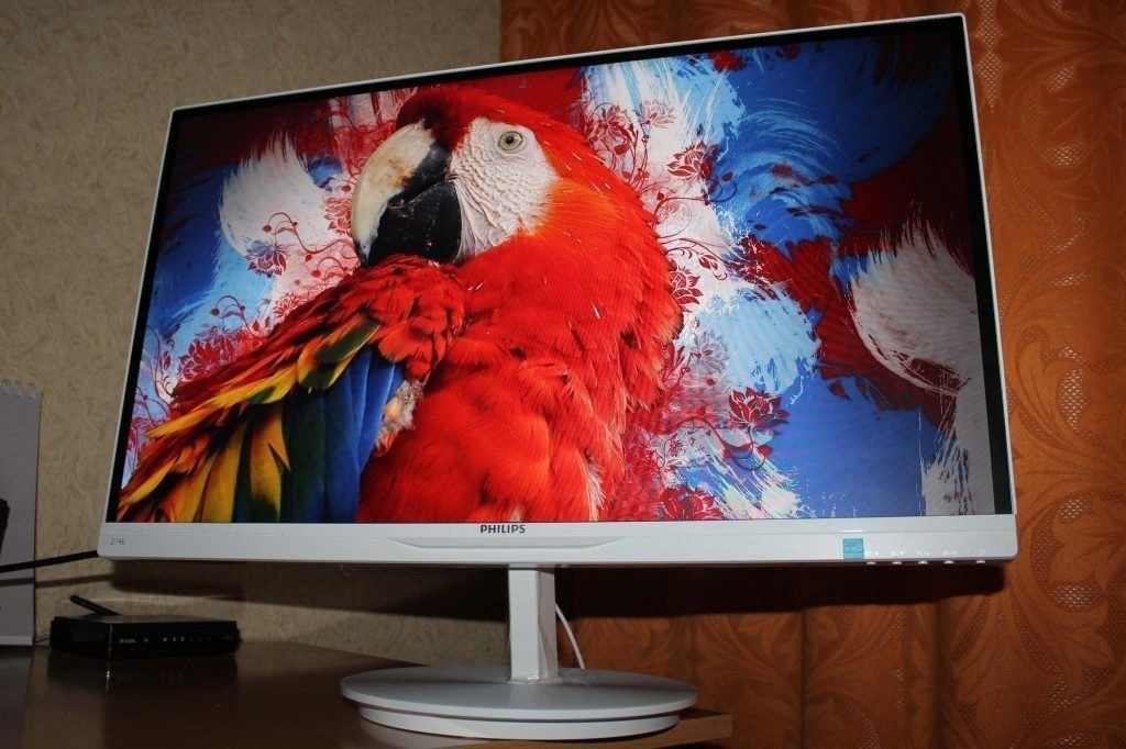 Il monitor può essere attribuito a una buona soluzione economica, perfetta sia per l'uso domestico che in ufficio. Il riempimento era una matrice PLS con risoluzione Full HD e una frequenza di aggiornamento dei fotogrammi di 60 Hz. Durante la visione del video e il lavoro con i testi, non c'è alcuna sensazione di disagio. Il dispositivo è dotato di tutte le moderne interfacce. I connettori HDMI e Display Port si trovano sul retro del monitor. Grazie agli ampi angoli di visione, puoi guardare film in grandi aziende e non c'è sbiadimento dell'immagine ad angolo. Lo schermo può essere inclinato e appeso alla parete.