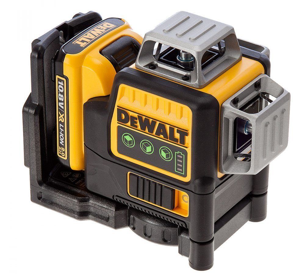 Questa è una super novità, dotata di un raggio verde. Una delle ultime novità di DeWalt, che ha piacevolmente sorpreso molti. Questo modello ha subito raggiunto il massimo delle vendite. Inoltre, il produttore offre una garanzia di 3 anni. Questo è un dispositivo incredibile con un raggio verde. Il fatto è che il verde è percepito da una persona 4 volte meglio del rosso. È chiaramente visibile all'esterno in una giornata di sole e all'interno sotto una forte luce artificiale. Questo dispositivo funziona a 360 gradi. Intervallo di livellamento 4 gradi. La portata operativa è di 35 metri, ma può essere aumentata fino a 50. La batteria rimovibile aggiunge mobilità al dispositivo. Qui è installato un treppiede per stabilizzare lo strumento.