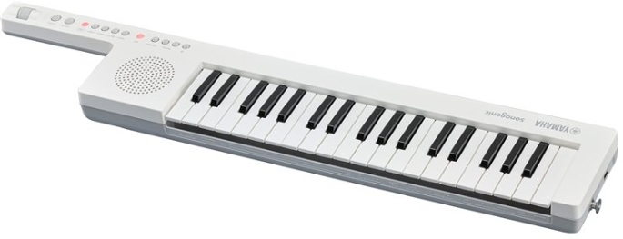 Questo è un sintetizzatore a tastiera digitale che può essere tenuto come una chitarra. La sua piccola e semplice esibizione rende facile immergersi nel mondo musicale. Grazie alla sua compattezza, il modello è molto comodo da trasportare. L'esecutore può suonare lo strumento come una chitarra, se appendi il sintetizzatore con una cinghia sulla spalla.