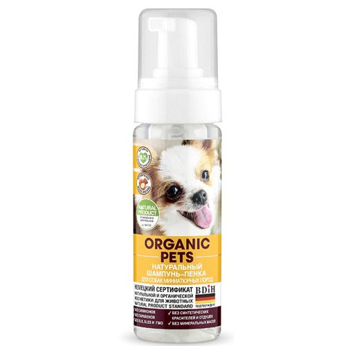 שמפו קצף לכלבים מיניאטוריים דקורטיביים. מרכיבים עיקריים: שמן קוקוס, שמן ארגן, קקאו, חוחובה. הם עוזרים להזין ולהעניק לחות לעור של חיות מחמד. עם המשך השימוש, המעיל הופך רך ומשיי. קצף צפוף מתמודד אפילו עם זיהום חזק. נפח: 150 מ"ל.