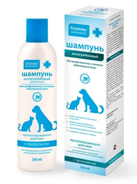 שמפו אנטי פטרייתי, שהמרכיבים הפעילים העיקריים בו הם קטוקונאזול, פירוקטונולמין ותמצית פרופוליס. לשני המרכיבים הראשונים יש השפעות אנטי-מיקרוביאליות ואנטי-בקטריאליות. הם פעילים נגד פטריות, שמרים ומיקרואורגניזמים. פרופוליס מאיץ ריפוי פצעים ובעל תכונות אנטי דלקתיות. שמפו, בנוסף להשפעה הטיפולית, עוזר להרטיב ולהזין את העור והפרווה של חיית המחמד, מנרמל את עבודת בלוטות החלב. נפח: 250 מ"ל.