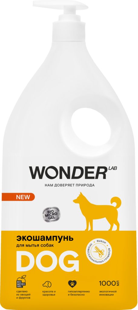 WONDER LAB הוא שמפו אקולוגי היפואלרגני בטוח ומודרני המיועד לשטיפת כלבים מכל הגזעים. מוצר זה מונע סבכים ומסיר ביעילות לכלוך. השמפו חסכוני בשימוש, אין בו ריחות, צבעים וסבונים אלקליים.