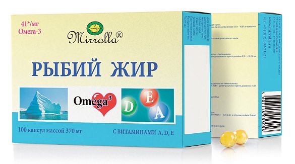 כמוסות שמן דגים מכילות ויטמינים מסיסים בשומן A ו-D.הסוכן ממלא תפקיד חשוב בתהליכי חיזור. מומלץ כתוסף מזון ביו-אקטיבי.