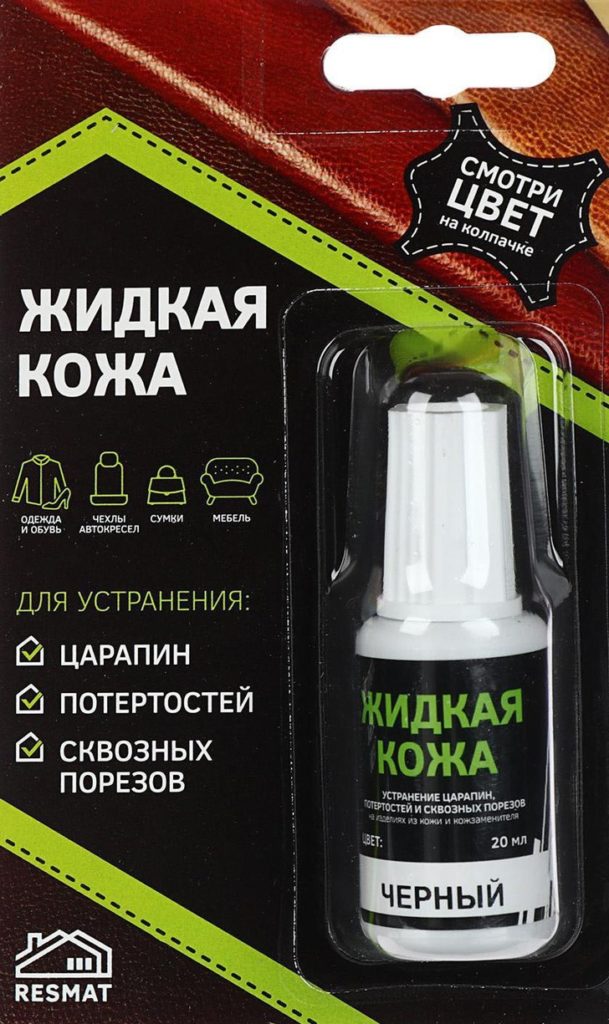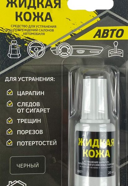 המוצר הייחודי מתאים גם לעור מלאכותי וגם לעור טבעי ברכב. מתאים להגה, ריפוד רכב, כמו גם נעליים, בגדים, מוצרי עור. ייבוש מלא מתרחש תוך יום אחד, המרווח בין השכבות הוא לפחות 15 דקות. אם החתכים עמוקים, אז בתחילה יש להדביק את החתך, ורק לאחר מכן ליישם את המוצר. מחיר: 255 רובל.