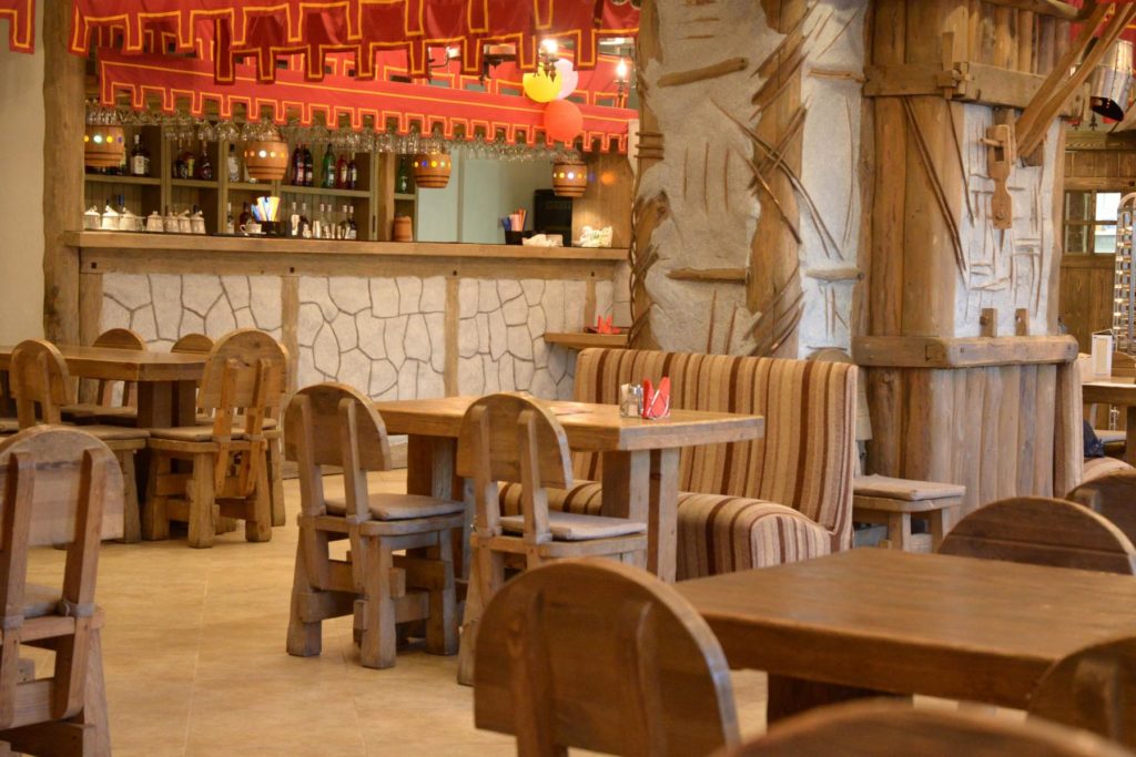 כרטיס בר - רשימה מרשימה של יינות אדומים ולבנים מבעבעים, משקאות חריפים. התפריט מורכב ממנות מהמטבח הרוסי והאירופאי.