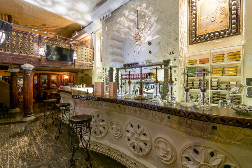 עיצוב מדהים עם טיח, זהבה ופסלים "עתיקים". אבל זה לא נוצץ או מעצבן. ספות נעימות רכות ומגוון נרגילות.