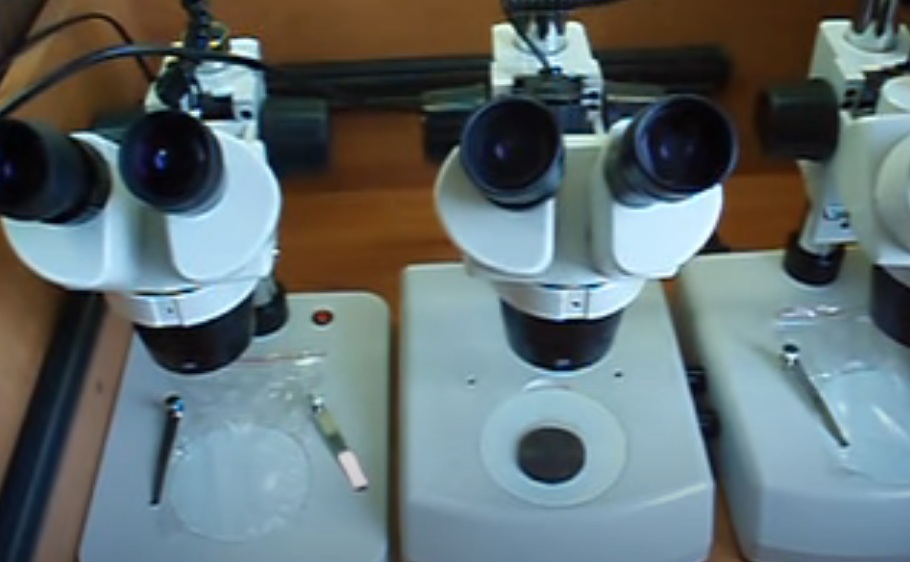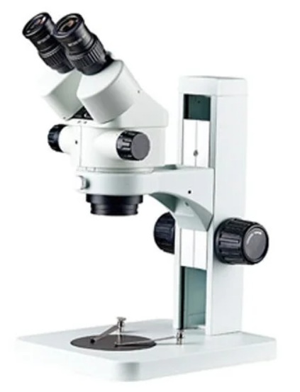 מכשיר סטריאוסקופי על מהדק מיצרן גרמני משמש במחקר של חומר נפחי לפי סוג האור המוחזר.