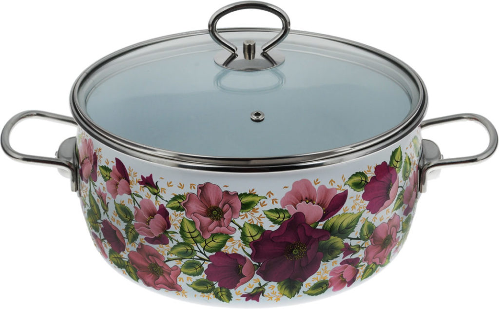 היצרן של מדגם זה הוא רוסיה. כאן אנו רואים הדפס יוצא דופן שיכול לקשט כל מטבח. התחזוקה מתבצעת על ידי שטיפה ידנית או שטיפה במדיח כלים. מכסה זכוכית כלול.