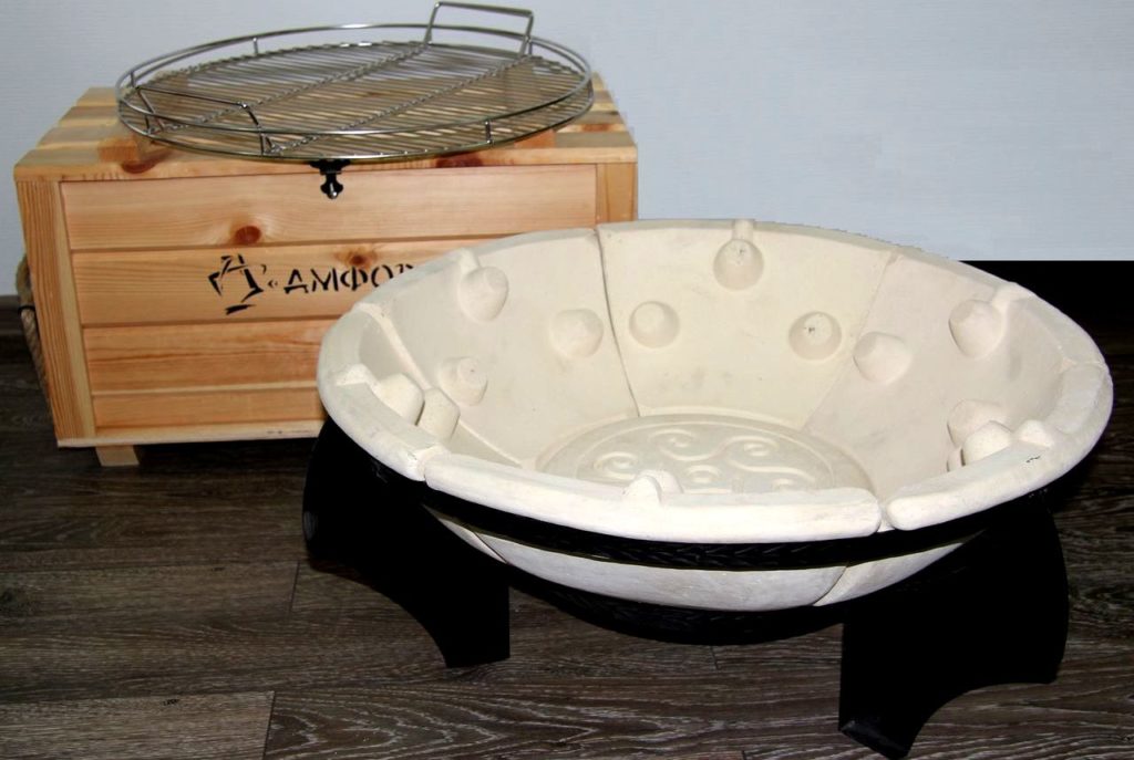 עיצוב קרמי על מעמד מתכת לא ישאיר אף אחד אדיש. זה שונה בכך שהוא מצטבר בצורה מושלמת ושומר על חום. ראוי לציין כי בנוסף לציוד הבסיסי יש רשת - גריל, אשר יאפשר לך לבשל לא רק דגנים, אלא גם ברביקיו.