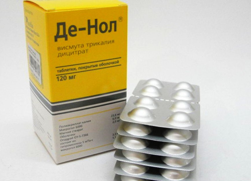 טבליה אחת של דה-נול, שהפכה לאחרונה לפופולרית מאוד, מכילה 120 מ"ג ביסמוט, שיכול להשפיע על החיידק הליקובקטר פילופי, הוא גם יוצר סרט מגן על רירית הקיבה. ההשפעה הגדולה ביותר מושגת אם הטבליות משמשות בשילוב עם סוכנים אנטיבקטריאליים ובטיפול מורכב. ניתן לרכוש את הכלי בבתי המרקחת ללא מרשם, אך לא רצוי ליטול אותו ללא ייעוץ של רופא ובקרה מצידו. ניתן לתת לילדים מגיל 4 שנים.