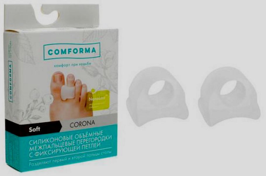 מחיצות מיועדות לבוהן הגדולה והשנייה. להקל על עייפות, לעשות תנועות נוחות, להקל על הכאב. סיליקון, רך במיוחד. נקבע עבור דלקת פרקים. אפשרו לבוהן הגדולה לתפוס תנוחה טבעית אם יש השטחה של כף הרגל. מגן מפני שפשוף ועיוותים.הסר כאב כאשר מופיעים תירס, תירס, ציפורניים חודרניות, סדקים, שפשופים, דלקת של האפידרמיס.