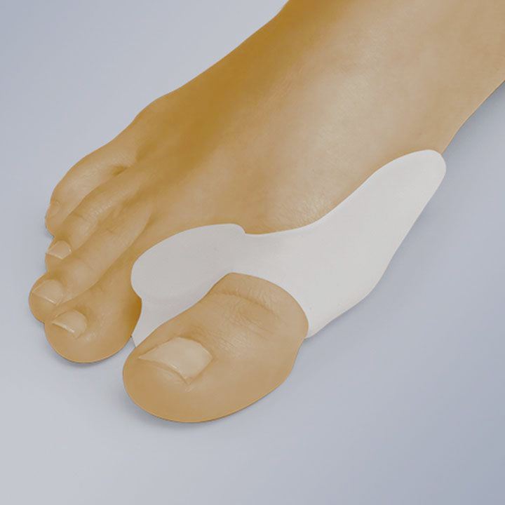 | מגן עצם עם בפל ומתקן אצבעות | רופאים ממליצים להשתמש אם העיוות עדיין ברמה נמוכה. הם מגנים על עצם הבוהן הגדולה ועל החלק הבולט של כף הרגל ממגע עם הנעליים. הוא אינו מאפשר לתהליכים דלקתיים להתקדם, ממזער את האפשרות להיווצרות של תירס ותירס. העור אינו משופשף ואינו מתגס. |