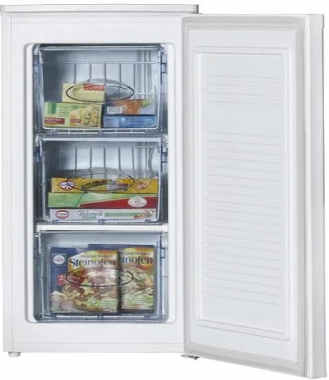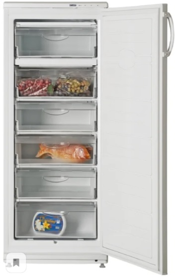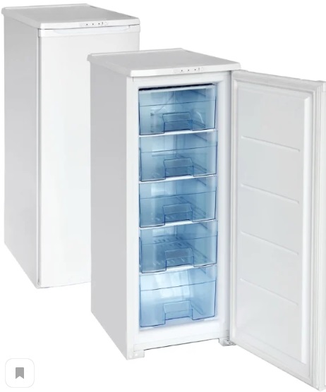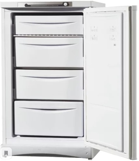 מקפיא אנכי צר. גודל קומפקטי, לבן, מכוסה פלסטיק. הדגם מספק לתלייה מחדש של הדלתות לצד הנגדי. קופסאות מרווחות עוזרות להפיץ מוצרים לקטגוריות: פירות יער, ירקות. לדגים יש קופסה נפרדת תחתונה, מוגדלת. למגירות אין מנחים ולכן כדאי להחזיק אותן בהרחבה מקסימלית.