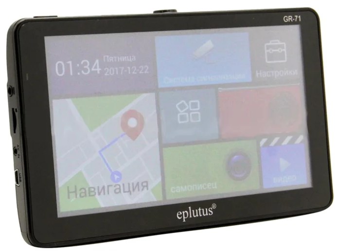Eplutus GR-71 הוא מכשיר רב תכליתי הפועל על פלטפורמת אנדרואיד וכולל נווט, מקליט וידאו וגלאי מכ"ם. מערכת ההפעלה מאפשרת לך להתקין אפליקציות נוספות מ-Google Play Market, למשל, לצפייה בתכני וידאו. המכשיר משתמש בתוכנת Navitel 9 לניווט. מערכת ה-GPS העדכנית משתמשת במקלט מובנה כדי לקבוע את מיקום הרכב. דיוק הקואורדינטות נקבע ברמה גבוהה, הודות לתקשורת עם 32 לוויינים. המעבד אחראי על מהירות האפליקציות: MT8127 בתדר של 1300 מגה-הרץ. המכשיר מצויד בצג TFT גדול (7 אינץ'). המצלמה המובנית (8 MP) מספקת זווית צפייה של 170̊ ורזולוציית וידאו של 1980x1080/1280x720 בפורמט AVI. הנווט יכול לעבוד גם באופן אוטונומי מהסוללה המובנית וגם מהמטען לרכב שמגיע עם הערכה. מחובר לכוס היניקה.
