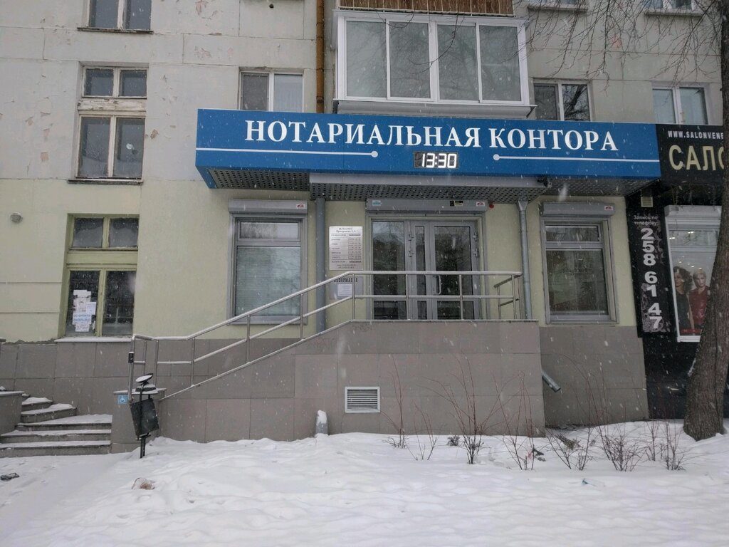 שאקירובה נטליה ולדימירובנה עוסקת בפעילות נוטריונית בשטח יקטרינבורג מאז 1995 (קרן: רישיון מס' 169 מיום 09.11.1995). מומחה בעל ניסיון רב בנוטריונים מבטיח לכל לקוח גישה מוכשרת, טקטית וקשובה.