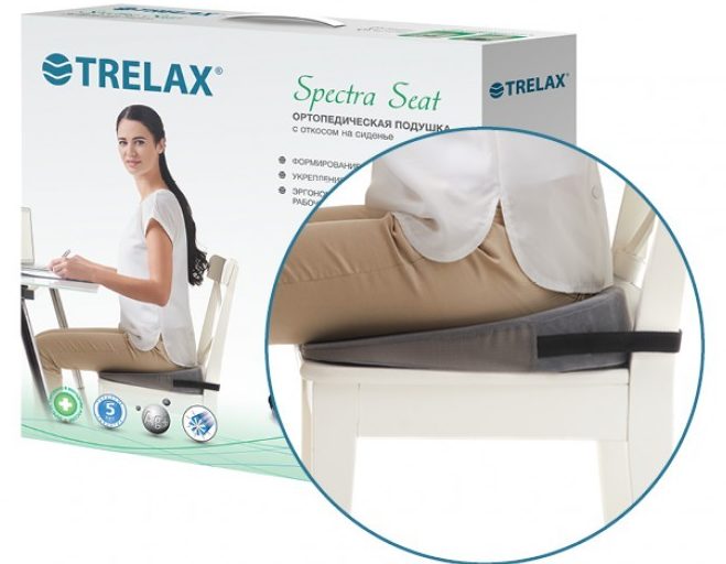 TRELAX Spectra Seat P17 נועד לחזק את שרירי הגב התחתון וליצור את היציבה הנכונה. בשל זווית הנטייה הקיימת, Spectra Seat P17 מפחית את העומס על הדיסקים הבין חולייתיים ומייצב את טונוס השרירים, ובכך עמוד השדרה תופס תנוחה נכונה יותר. קצף פוליאוריטן בעל גמישות גבוהה הוא החומר העיקרי ממנו עשוי דגם זה, יש לו גמישות מוגברת היוצרת נוחות ותמיכה הדרושה במהלך השימוש. בנוסף ל-Spectra Seat P17, ישנו מוסיף נשלף, עשוי גם הוא מקצף פוליאוריטן, אך בעל עקביות רכה יותר, הוא משמש אנשים הסובלים מטחורים. TRELAX Spectra Seat P17 מתאים לשימוש על כיסאות ומושבי רכב, הוא ממוקם עם חלק גבוה לגב המושב וחגורה משמשת כאטב לקיבוע. הכרית שייכת לאביזרים רפואיים, בעלת תעודה באיכות הגבוהה ביותר. מומלץ לשימוש על מנת להקל על מתח שרירים בגב המופיע בישיבה ממושכת, להקלה על כאבי גב וכן לסובלים מטחורים.