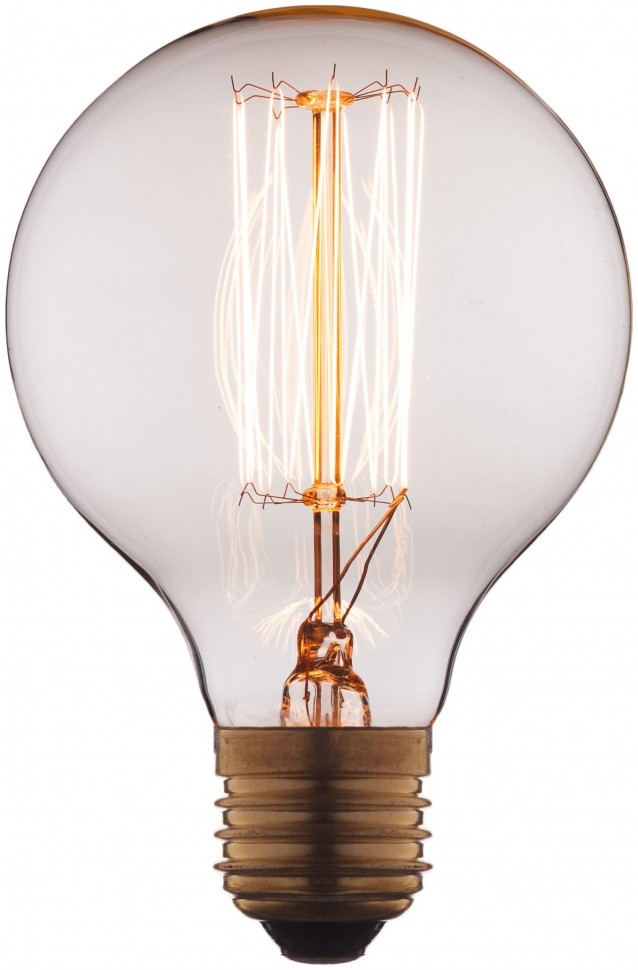 מקור אור מסוג LED, נורת זכוכית בצורת כדור. סוג בסיס סטנדרטי E27. צריכת חשמל - 40 W, צבע בהיר - ענבר. גובה המנורה 12 ס"מ, קוטר 8 ס"מ. שטח הארה המקסימלי הוא 2.2 מ"ר. מ' אביזרי מתכת צהובים.