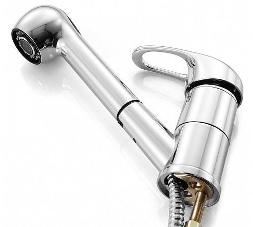 ברז קומפקטי חד ידית עם ספריי נשלף שיגדיל את הפונקציונליות של המטבח הקטן ביותר. למזלף הנשלף שני מצבי סילון: טפטוף רך ומקלחת עוצמתית. כפתור על המזלף עוזר במעבר ביניהם. הצינור בעל משקל נגד מקל ונוח מאוד להחזיר אותו למקומו. התנועה החלקה של הידית הופכת את קביעת טמפרטורת המים לקלה ומדויקת.