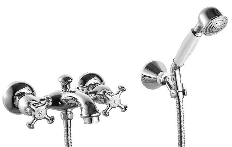מיקסר אמבט דו שסתומים בסגנון עתיק עם מקלחת. פיה היצוקה העמידה והאמינה מצוידת במאוורר Neoperl M28. השסתומים מסתובבים 180 מעלות, מה שמאפשר לך לכוונן עדין את טמפרטורת המים.