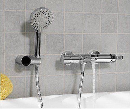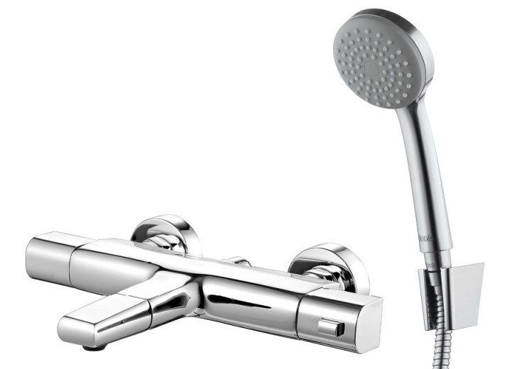 ברז אמבטיה תרמוסטטי עם מקלחת יד. ייחודו של דגם זה הוא שהחיבור שלו למערכת אספקת המים אינו תלוי במיקום של צינורות מים חמים וקרים. המפנה הקרמי (מתג מקלחת) עמיד, אך דורש ניקוי תקופתי של אבנית במים קשים. הגימור מצופה כרום עמיד בפני שריטות ושומר על הברק שלו לאורך זמן (בטיפול נאות).