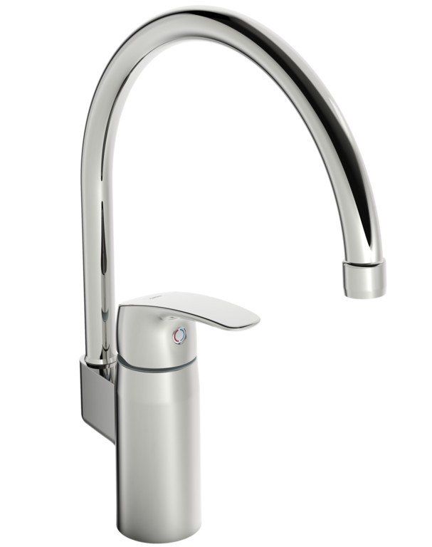 ברז חד ידית עם מגביל טמפרטורת מים מובנה. הצורה המסורתית ללא פרטים מיותרים תתאים לחלק הפנימי של כל מטבח.