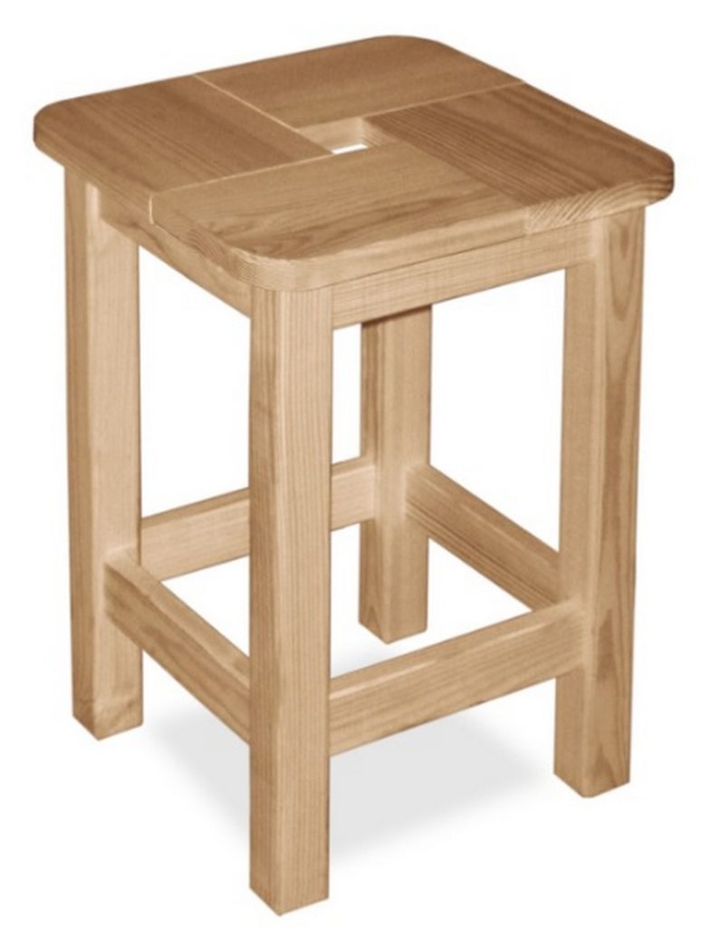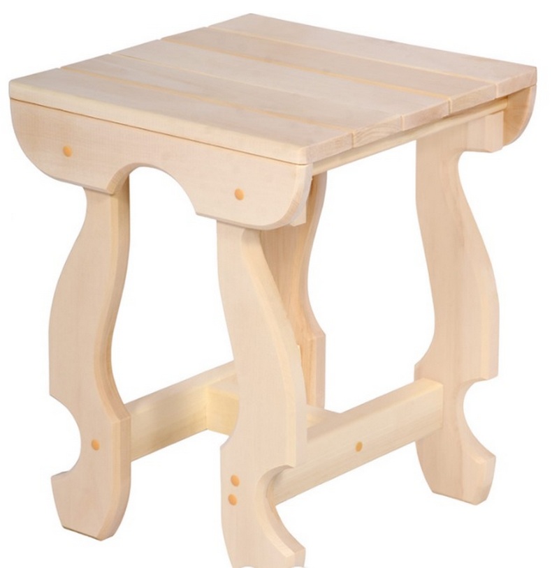 לדוגמא זו יש צורות מסורתיות. ניתן לנשיאה בקלות באמצעות החור במושב. המוצר מהווה פתרון אידיאלי למטבח, לצרכי בית בגינה, בגינת ירק, בסדנא וכו'. המוצר לא צבוע. סוג עץ - אורן, מידות - 330 x 330 x 465 מילימטרים, עומס מרבי, ק"ג - 250. העלות המומלצת לרשתות קמעונאיות היא 1544 רובל.