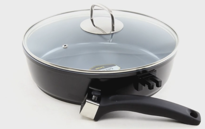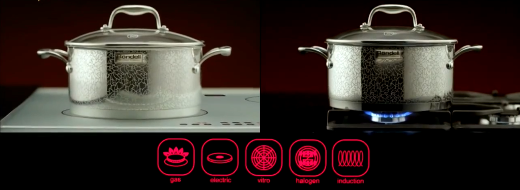 המחבת האוניברסלית הודות לידית הנשלפת הופכת לסיר. הידית והצד החיצוני שחורים. ניתן להסיר את הידית בקלות (בלחיצת כפתור אחת על הידית). נראה מאסיבי.