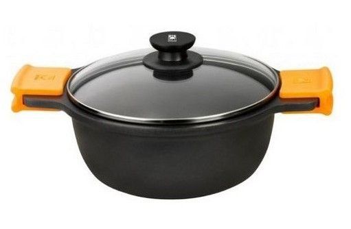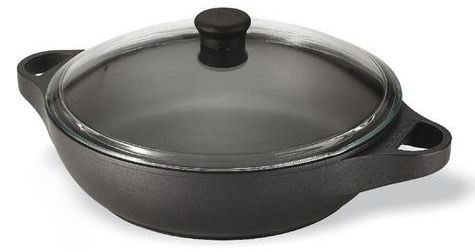 דגם רגיל ביציקה מוצקה שחורה קלאסית עם שתי ידיות מחוררות. יש רפידות מיוחדות על המחזיקים נגד חום. הסט כולל מכסה זכוכית עם שפה מתכתית.