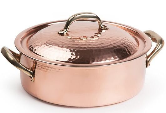 דגם LMR 1232094 גודל בינוני עשוי נחושת, זהב כהה. הסיר והמכסה כולו עשויים מאותה מתכת ובעל דוגמה מוטבעת לאורך המשטח החיצוני.