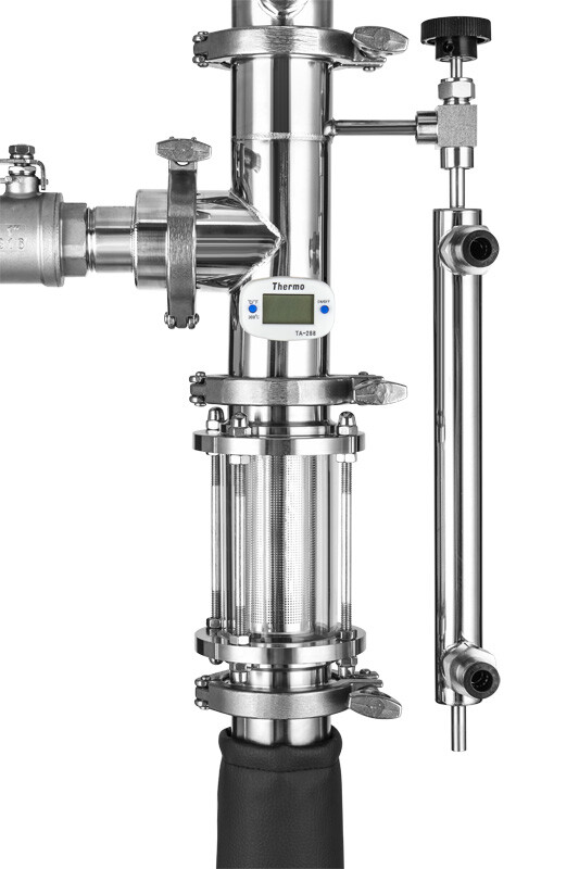 בבית מותקנים 3 מדחומים עם בדיקה קצרה, שאינם באים במגע עם הסביבה (רק עם קיטור עובר), מה שמבטיח אפס שגיאה.כל אחד מהם מבצע את תפקידו: הראשון מודד את טמפרטורת האדים בעמודה, השני - בקובייה, השלישי - את הטמפרטורה באזור הנוזל. מדי חום מותקנים באמצעות אטמי סיליקון.