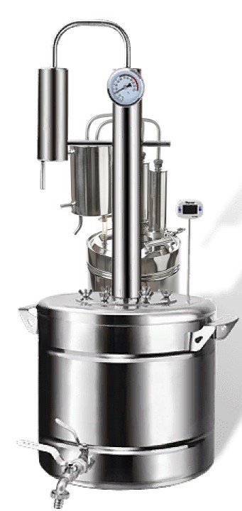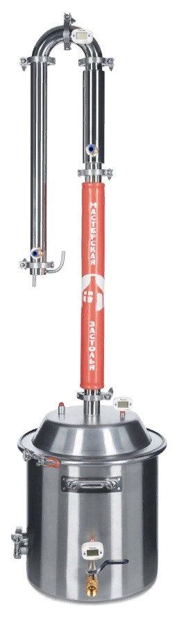 הסט מגיע עם tsarga עם פיית Panchenkov מובנית. ושני מדי חום מאפשרים לך לעקוב אחר טמפרטורת הקיטור במיכל ובחלק העליון מעל ה-dephlegmator.