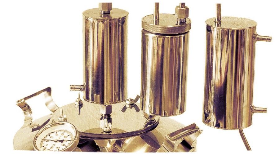 לא רק סטילס ירח ומיני מזקקות יכולים לייצר את המשקה הנחשק. לאחרונה, אלמביקים צוברים יותר ויותר פופולריות - מבני נחושת, כולל קוביית זיקוק, קסדת כיפה, צינור קיטור וסליל מקורר. ניתן להשלים עם עמודה.