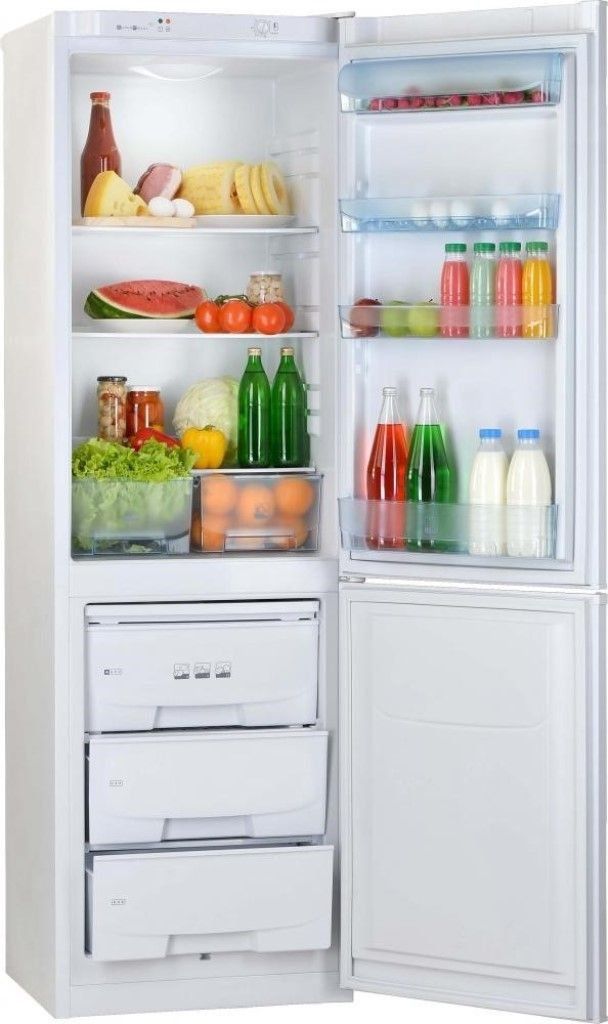古典的な機能セットを備えた、上記のすべてのオプションの中で最も予算がかかります。寸法は 60x63x195 cm、重量 - 68 kg、容積 - 367 リットルで、そのうち 252 が冷蔵庫の容積、115 が冷凍庫です。霜取りシステムがあることを示すものもありますが、多くの場合、ユニットの霜取りは冷凍庫では手動で、冷蔵庫ではドリップであるという報告が見られます。