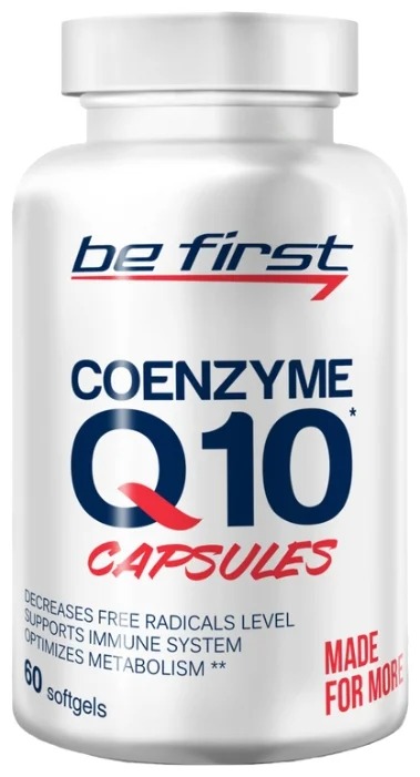 Be First コエンザイム Q10 は、それぞれ 60 mg のコエンザイム Q10 と大豆油、水、食品着色料を含むソフトジェルで入手できます。大豆油は補酵素の吸収と同化を改善します。この栄養補助食品を摂取すると、心臓血管系が強化され、免疫力が向上し、脂肪の処理が促進され、組織の再生能力が向上し、組織がエネルギーで満たされ、フリーラジカルの悪影響も減少します.サプリメントは、1 日 1 カプセルを 1 か月間服用してください。禁忌は大豆アレルギーです。 60 カプセルのパッケージの平均価格は 560 ルーブルです。