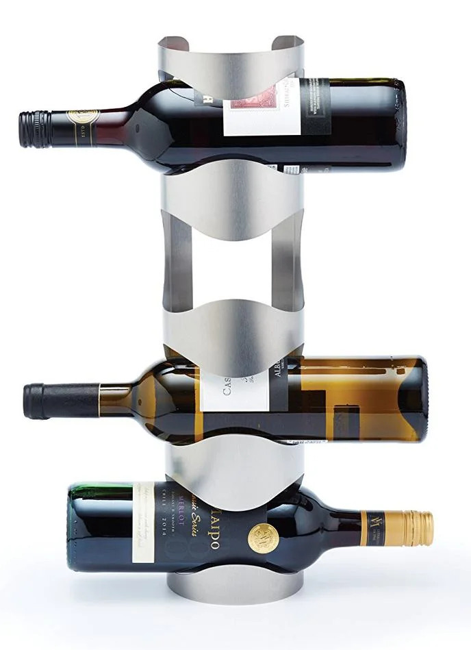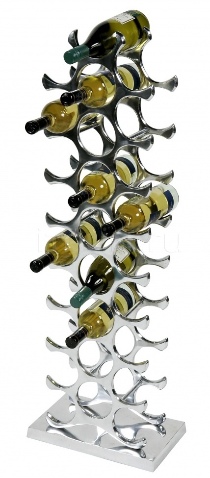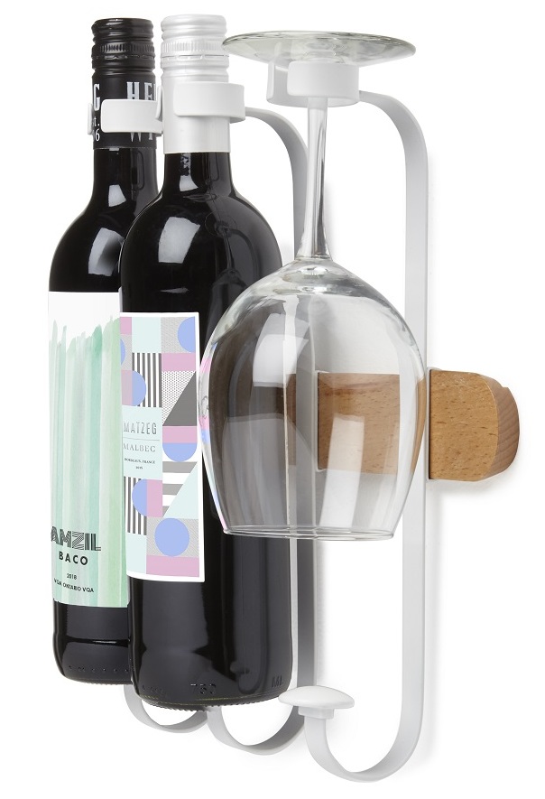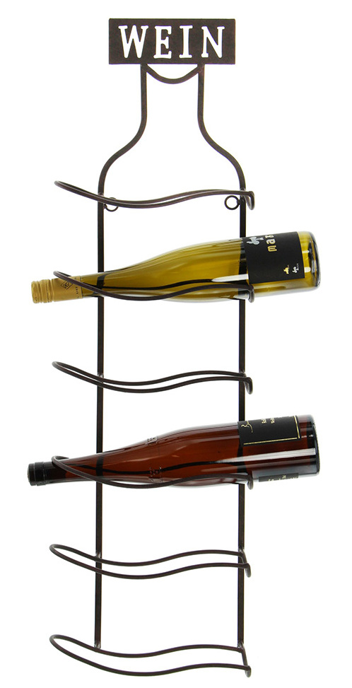Šis modelis yra miniatiūrinis pakabinamas alkoholinių gėrimų butelių laikiklis. Jis pagamintas iš aukštos kokybės nerūdijančio plieno ir skirtas 4 kopijoms. Originalus dizaino sprendimas leidžia tvirtai ir patikimai pritvirtinti konteinerį horizontalioje padėtyje, taip užtikrinant tinkamas laikymo sąlygas. Gaminio tvirtinimas prie sienos leidžia neužimti naudingo stalo ar kitų virtuvės baldų ploto. Kaip atskira interjero dekoro detalė gali pasitarnauti ir pakabinamos lentynos su gražiais buteliukais kompozicija.