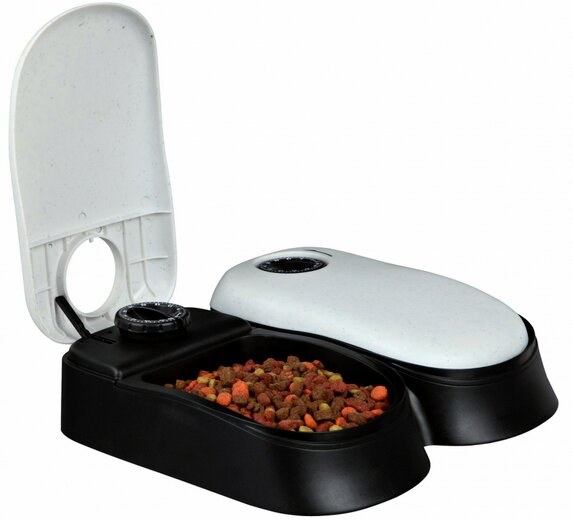 Jei naudojamas natūralus, šlapias maistas, tuomet tinka segmentiniai modeliai, gaminiai su atverčiamu dangteliu. Minusas – pašaro užtenka tik 1-2 dienoms.