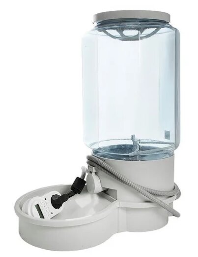 Medžiaga - patvarus plastikas (baltas, skaidrus).Dvi dalys: permatomas bakas su baltu dangteliu, baltas pagrindas (dubuo, talpos tvirtinimo taškas).