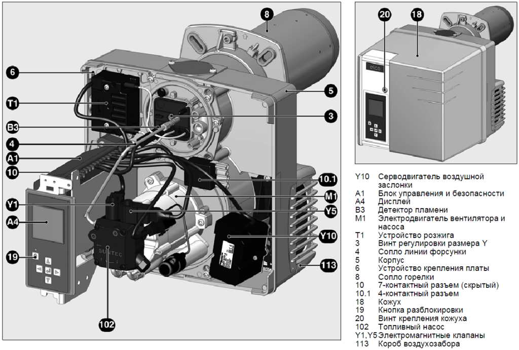Po apvaliu korpuso dangteliu vidiniai komponentai yra patogiai išdėstyti techninei priežiūrai. Visos elektros jungtys yra su jungtimis. Apibrėžianti gerai apgalvotos įrenginio konstrukcijos detalė – aptarnavimo padėtis, kurioje degiklis atsiduria atidarius sklendes. Jame visi darbiniai elementai nuo ventiliatoriaus rato iki disko su uždegimo elektrodais yra laisvai prieinami.