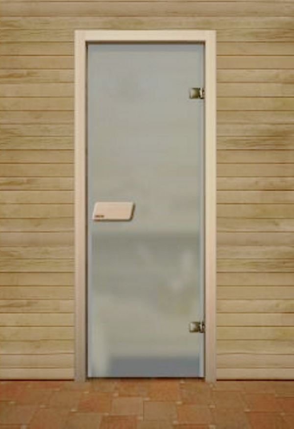 Tai dar vienos durys, kuriose įrengta vonia ir sauna.Pagal charakteristikas kambarys primena vonios kambarį: vienodi temperatūros pokyčiai ir didelė drėgmė. Pasak pirkėjų, verta sustabdyti pasirinkimą ant plastikinio lakšto arba su matiniu stiklu. Tokios medžiagos priskiriamos higieninėms. Jas lengva sutvarkyti: išplauti plovikliais ar dezinfekavimo priemonėmis. Jie atitinka visas sanitarines normas ir taisykles.