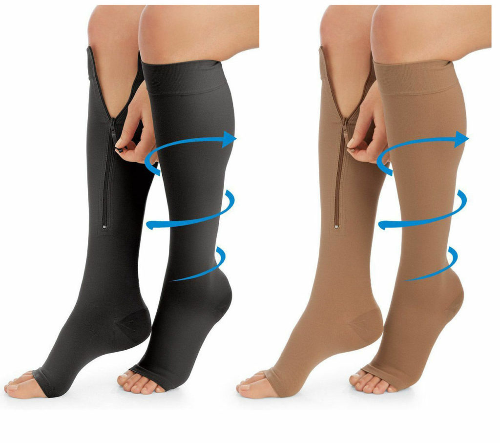 Tačiau dažniausiai naudojamos kompresinės kojinės arba pėdkelnės – jos užkerta kelią tolesniam ligos plitimui ar jos prevencijai, nes padeda teisingai paskirstyti spaudimą, kuris judesio metu daromas venoms. Be to, jie mažina diskomfortą, susijusį su venų varikoze.