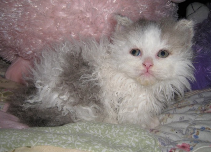 Nuostabios katės išauginamos sukryžminus Munchkins ir LaPerms. Iš protėvių gautos rūšys paveldėjo trumpas kojas ir garbanotus plaukus. Kartais jie vadinami „katės avinėliu“. Dviejų veislių simbiozė davė puikų rezultatą. Paaiškėjo įdomūs egzemplioriai ilgais ir banguotais plaukais. Vidutinis kačių kūno svoris svyruoja nuo 2,2 iki 4 kg, patelės sveria nuo 1,8 iki 3,6 kg.